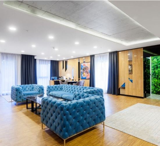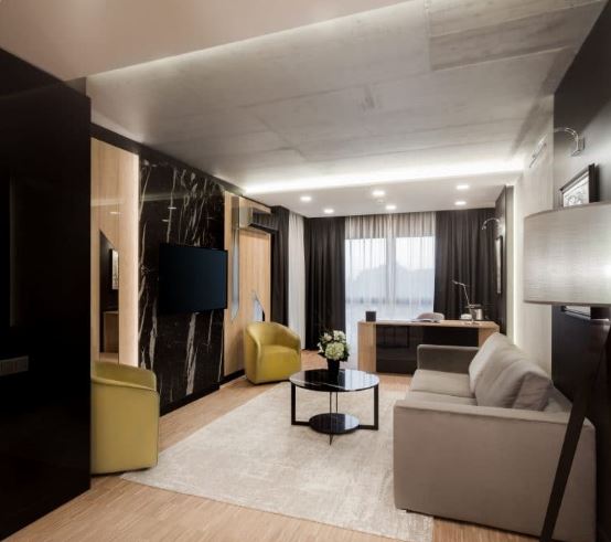 Apartamentul One Bedroom Executive Suites, cameră cu o suprafață de 55 metri pătrați, oferă tot confortul pentru o ședere memorabilă în Cluj-Napoca. Fiecare apartament de acest fel beneficiază de dotări luxury, cu accent pe confortul oferit de dormitor, precum și o zonă de living spațioasă, cu birou de lucru accesorizat complet.