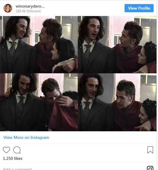 ”Nu prea îmi venea să cred, dar Francis Ford Coppola, regizorul lui Dracula, a contactat-o pe Winona și a declarat, public, că da, chiar s-a întâmplat. Preotul a ținut o ceremonie adevărată, iar eu și Winona chiar ne-am căsătorit”, a spus Reeves.