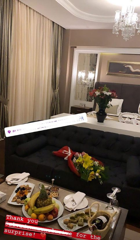 Angajații hotelului de 5 stele la care au fost cazați i-au așteptat pe cei doi îndrăgostiți cu câteva surpize pentru a le face șederea cât mai plăcută. Șampanie, mâncăruri alese, nici fructele nu au lipsit pentru graviduță. Înainte de somn Anca s-a relaxat în jacuzzi-ul pregătit de soț special pentru ea.