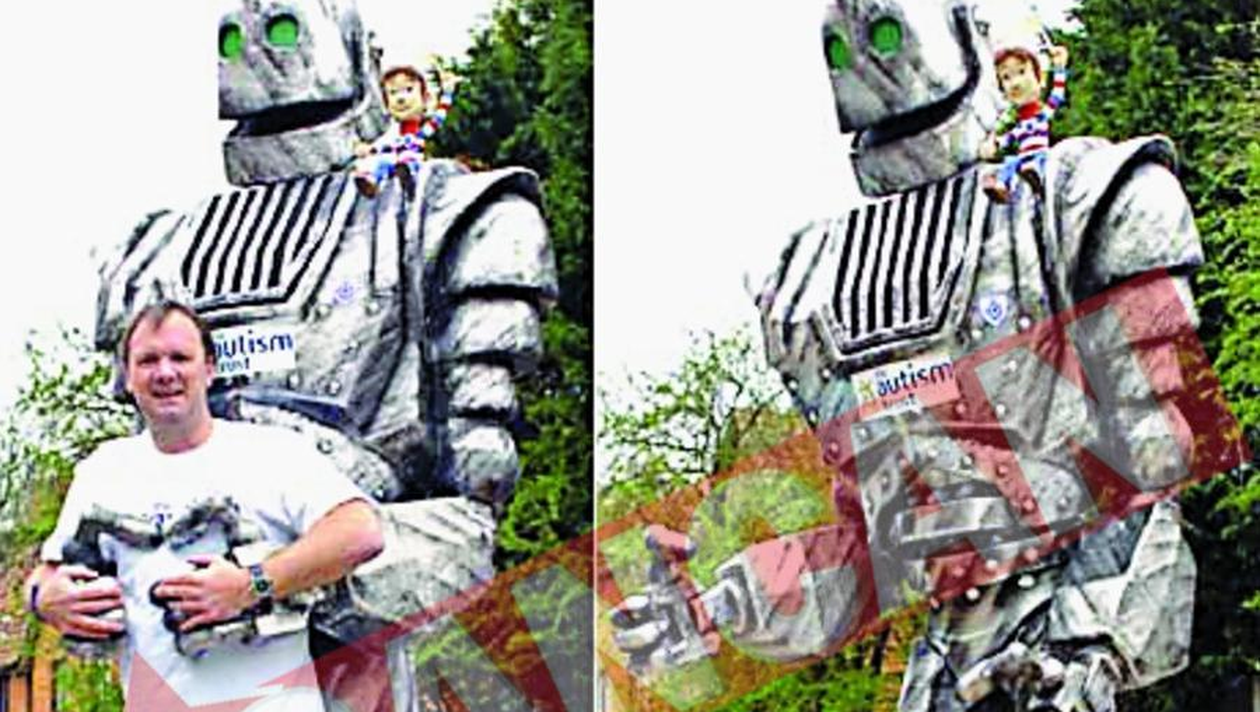 CHIN. Ca sa poata alerga in robotul-gigant, Lloyd s-a cocotat pe picioroange AJUTOR. Britanicul a fost asistat de o intreaga echipa inaintea competitiei Inedit. Un britanic a participat la maratonul din Londra carand in spate 31,8 kilograme de metal si fibra de sticla Alina Creanga Britanicul Lloyd Scott, in varsta de 46 de ani, s-a gandit la o modalitate neobisnuita de a strange bani in beneficiul persoanelor care sufera de autism. Astfel, el s-a inscris pe lista participantilor la maratonul Londrei, alergand deghizat in robot. Pentru a se asigura ca va atrage atentia asupra cauzei pe care o sustine, Lloyd, originar din Rainham, si-a comandat special pentru aceasta ocazie un costum de 2,7 metri inaltime si care cantareste 31,8 kilograme. Realizat din metal si fibra de sticla, cu membrele si gura mobile, robotul lui Scott a fost creat de sculptorul Aden Hynes, care, pentru a rezolva problema diferentei de inaltime dintre Lloyd si costumul sau, a montat in interiorul picioarelor acestuia din urma doua picioroange.