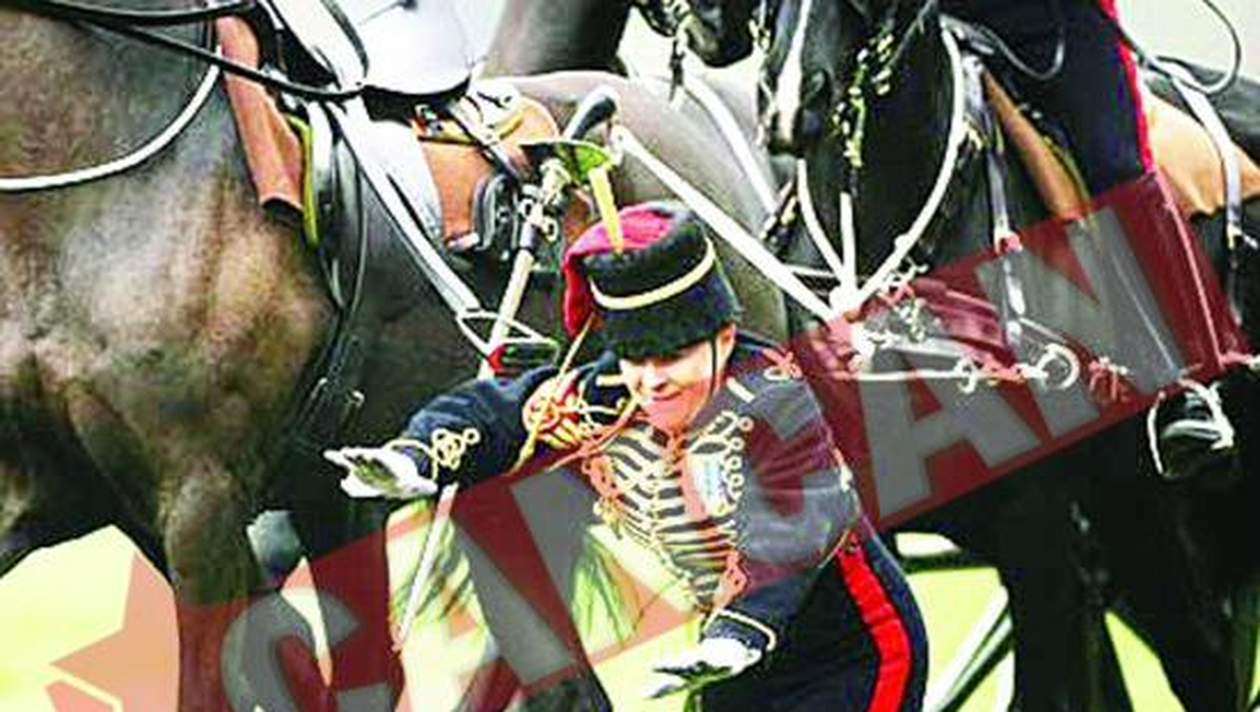 JENANT. Dupa ce s-a antrenat mai multe luni, artilerista s-a facut de ras in fata publicului prezent la defilare Desi s-a antrenat luni intregi pentru a face o figura frumoasa la festivitatile prilejuite de ziua de nastere a reginei Elisabeta a II-a a Marii Britanii, o tanara artilerista a fost aruncata din sa de armasarul pe care il calarea, chiar in clipa in care totii ochii erau atintiti asupra ei. Femeia, al carei nume nu a fost dat publicitatii si despre care se banuieste ca ar avea in jur de 20 de ani, a incercat sa isi mascheze jena cu un zambet, apoi a facut eforturi disperate pentru a ajunge din nou calare si a se alatura colegilor ei de defilare. (A.C.)