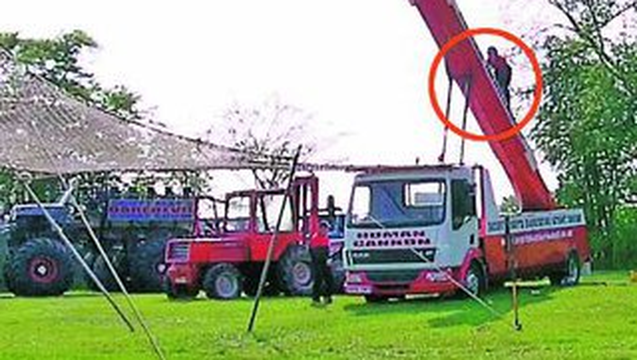 Zeci de spectatori prezenti la o reprezentatie speciala de Paste in Detling, Marea Britanie, au ramas inmarmuriti cand unul dintre cei mai experimentati cascadori ai grupului „Scott May Daredevil Stunt Show” a cazut direct in cap de la 15 metri inaltime. Accidentul s-a petrecut din cauza unei defectiuni provocata de reculul puternic al tunului care l-a propulsat in aer pe cascador si care a dus la prabusirea plasei de siguranta in care acesta trebuia sa aterizeze. Omul-ghiulea, pe nume Matt, in varsta de 23 de ani, nu a avut nicio sansa. El a cazut in cap pe pamant, de la mare inaltime, suferind rani grave la cap si la gat. Tanarul a fost transportat de urgenta la spital, insa a murit la scurt timp dupa accident. Martorii cumplitului accident au declarat ca nu si-au dat seama initial daca ceea ce s-a intamplat sub ochii lor facea sau nu parte din spectacol.