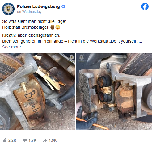 ”Șoferul a simțit miros de lemn ars și a observat ceva suspect la sistemul de frânare. Nu vezi așa ceva în fiecare zi: lemn în loc de plăcuțe de frână! Creativ, dar periculos pentru viață. Ancheta noastră vizează încălcarea normelor de circulație rutieră. Ancheta în acest caz continuă”, a menționat Victoria Zahler pentru presa străină.