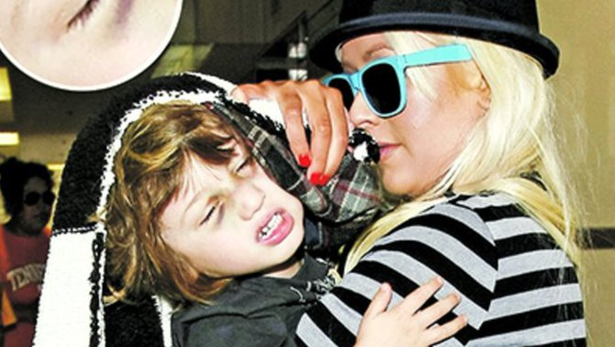 Artista Christina Aguilera (30 de ani) a fost fotografiata pe aeroportul din Los Angeles, impreuna cu fiul ei, Max (3 ani). In bratele mamicii lui, baietelul se schimonosea de durere. Avea ochii invinetiti si, se pare, nasul spart. Aguilera a incercat disperata sa-i acopere cu orice pret fata fiului ei, pentru ca acesta sa nu fie fotografiat de paparazzi in starea in care era. Comportamentul cantaretei nu a facut decat sa alimenteze zvonurile conform carora artista este posibil sa-si fi altoit fiul, cu atat mai mult cu cat, in ultima vreme, apropiatii vedetei se plang ca aceasta face dese crize de isterie si are un comportament violent.
