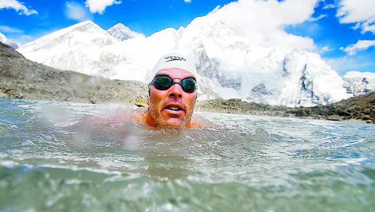 Activistul britanic Lewis Gordon Pugh, in varsta de 40 de ani, este un barbat cu adevarat curajos. El a devenit primul om care a inotat pe o distanta lunga, un kilometru, si la o temperatura foarte scazuta, -2 grade Celsius, in lacul Pumori, aflat la o altitudine de 5.300 de metri inaltime, la poalele celui mai inalt varf muntos din lume, Everest. Temerarul a intrat in apa rece ca gheata imbracat doar in costum de baie si echipat cu o pereche de ochelari de inot, reusind sa parcurga distanta de un kilometru in 22 de minute si 51 de secunde. La finalul cursei, Lewis a fost asteptat de o echipa de medici, care i-au adus temperatura corpului la normal. „A fost, de departe, cea mai dificila provocare pe care am avut-o pana acum. Daca inotam mai repede, nu mai puteam respira, iar daca incetineam, intram in hipotermie”, a declarat curajosul Lewis, care a trecut prin aceasta experienta pentru a atrage atentia asupra fenomenului de topire a ghetarilor.
