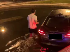 Mai mulţi oameni s-au adunat la faţa locului pentru a se asigura că bărbatul nu are nevoie de îngrijiri medicale. Din fericire, acesta nu a fost rănit și a ieșit singur din autoturism.