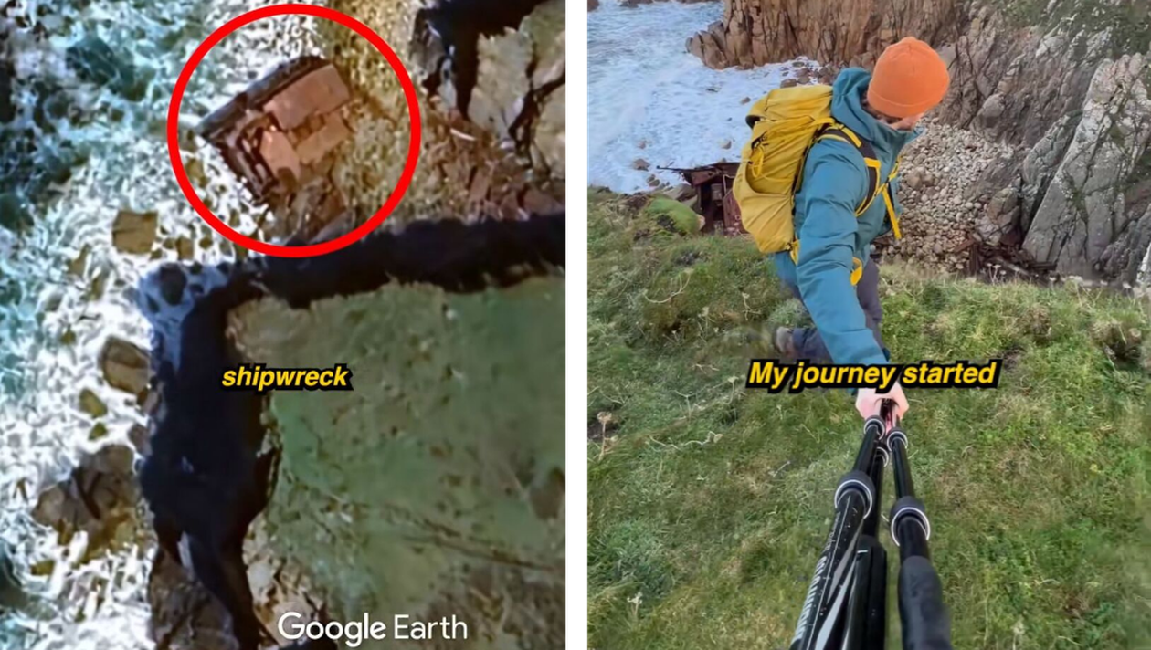 „În timp ce navigam pe Google Earth, am dat peste ceva ce părea a fi o epavă masivă. Era ascunsă într-un golf retras de-a lungul spectaculoasei coaste a Angliei. Bineînțeles că nu am rezistat tentației de a merge să o văd cu ochii mei.”, a povestit Josh pe TikTok.