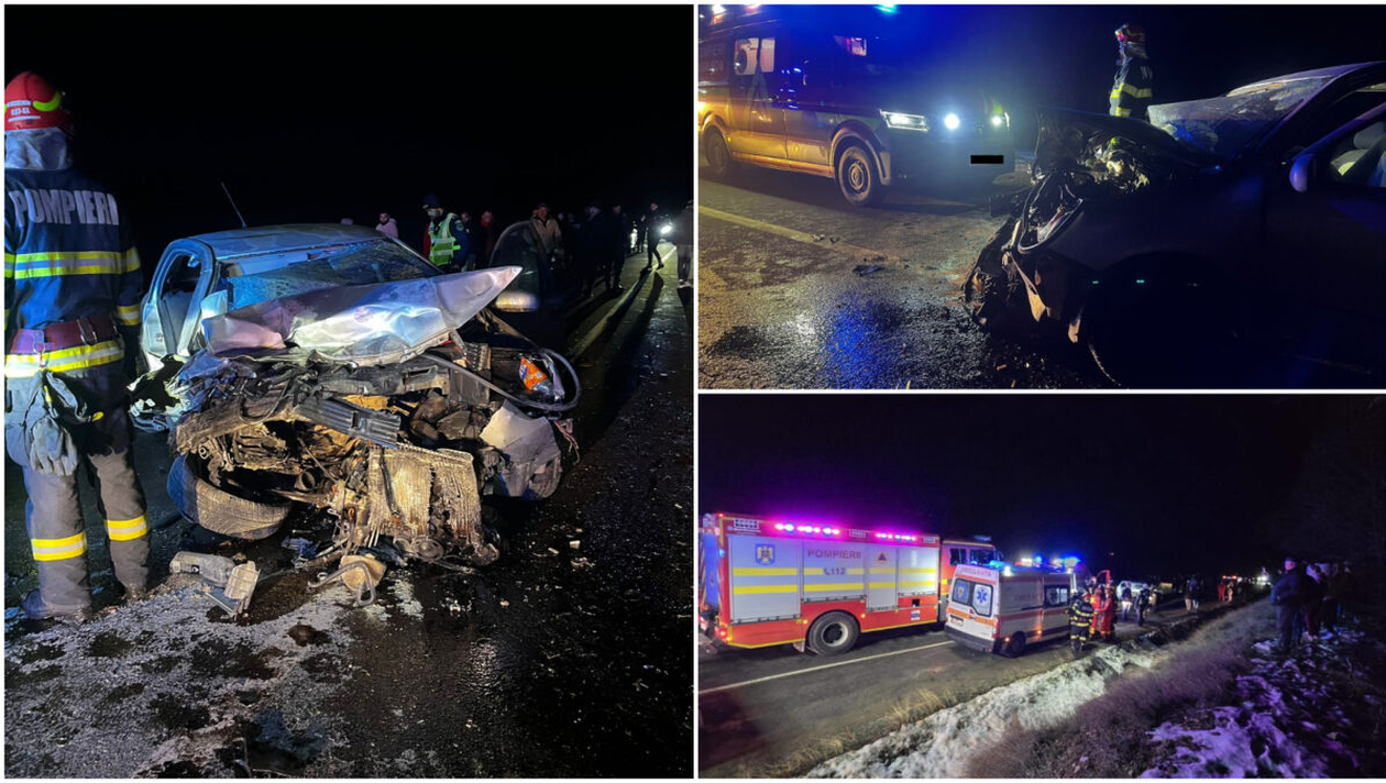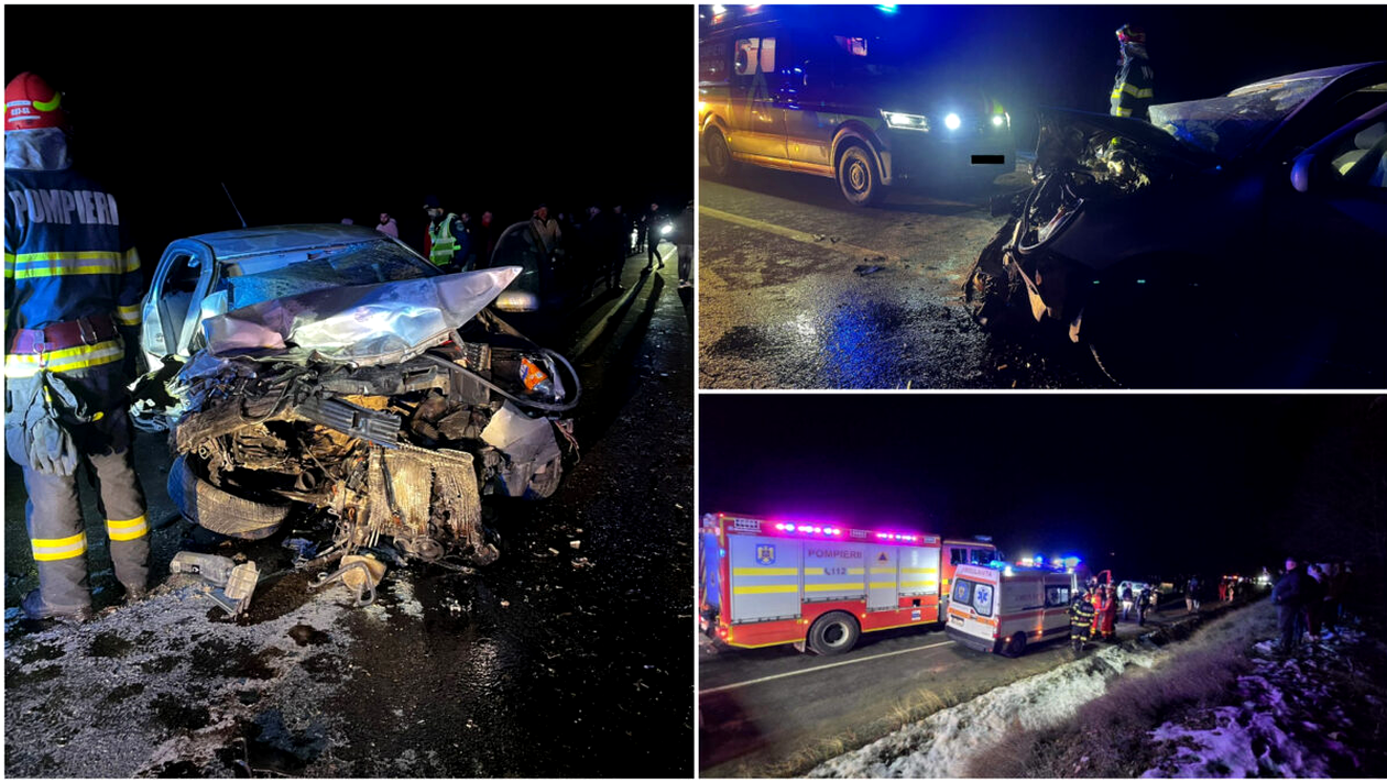 Din primele informații, accidentul dintre cele două autoturisme s-ar fi produs după ce unul dintre șoferi, un bărbat de 39 de ani, nu ar fi adaptat viteza la condițiile de drum și a pierdut controlul volanului. A lovit alte două autoturisme.