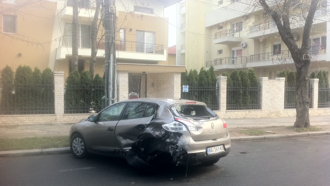 Paparazii CANCAN.ro au fotografiat masina accidentata, un Renault gri cu numere de Bulgaria care apartine unui cetatean strain, tamponat puternic chiar in parcare.