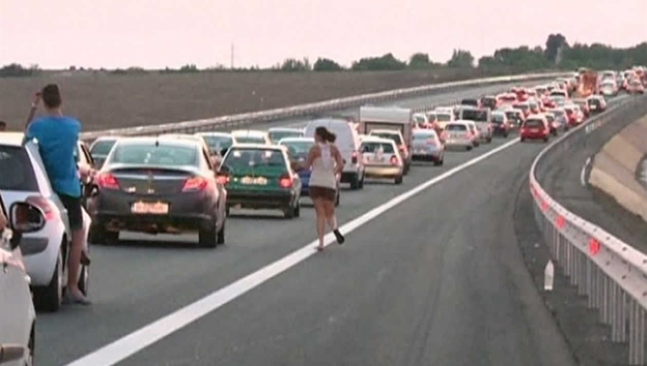Traficul rutier se desfăşoară pe banda de urgenţă.