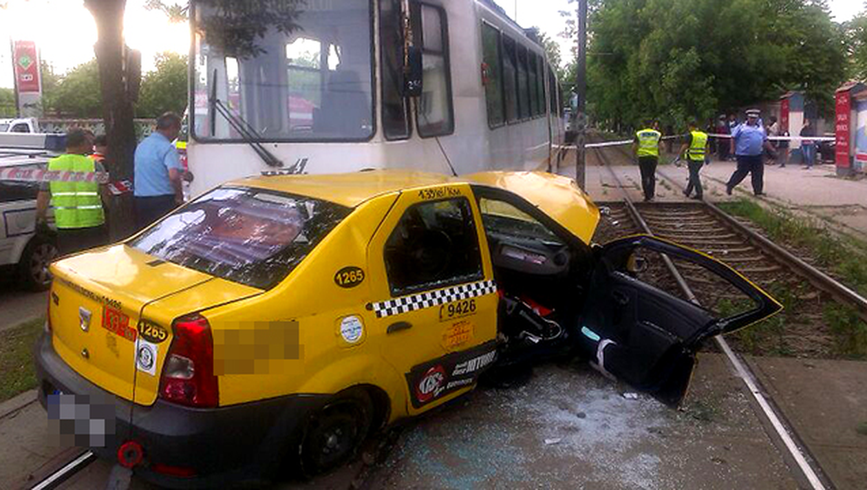 In accident au fost implicate un tramvai al liniei 11 si un taxi intrat pe linia vehiculului RATB.