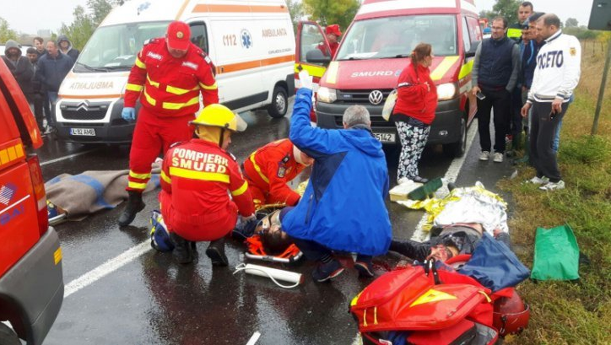 La faţa locului au fost alertate două echipaje de descarcarcerare, o autospecială de stingere cu modul de descarcerare şi prim ajutor, o ambulanţă SMURD, o autospecială pentru victime multiple şi patru echipaje medicale SAJ.