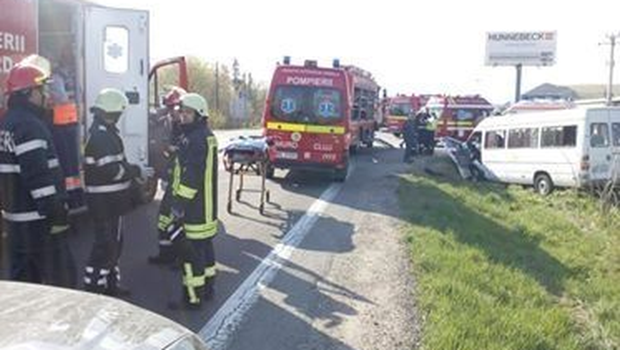 „În urma accidentului rutier au rezultat 10 victime. La ora 16.30 a fost activat Planul Roşu de Intervenţie. Intervin două autospeciale cu modul de descarcerare, trei echipaje SMURD şi o autospecială pentru transportul victimelor multiple”, informează ISU Cluj.