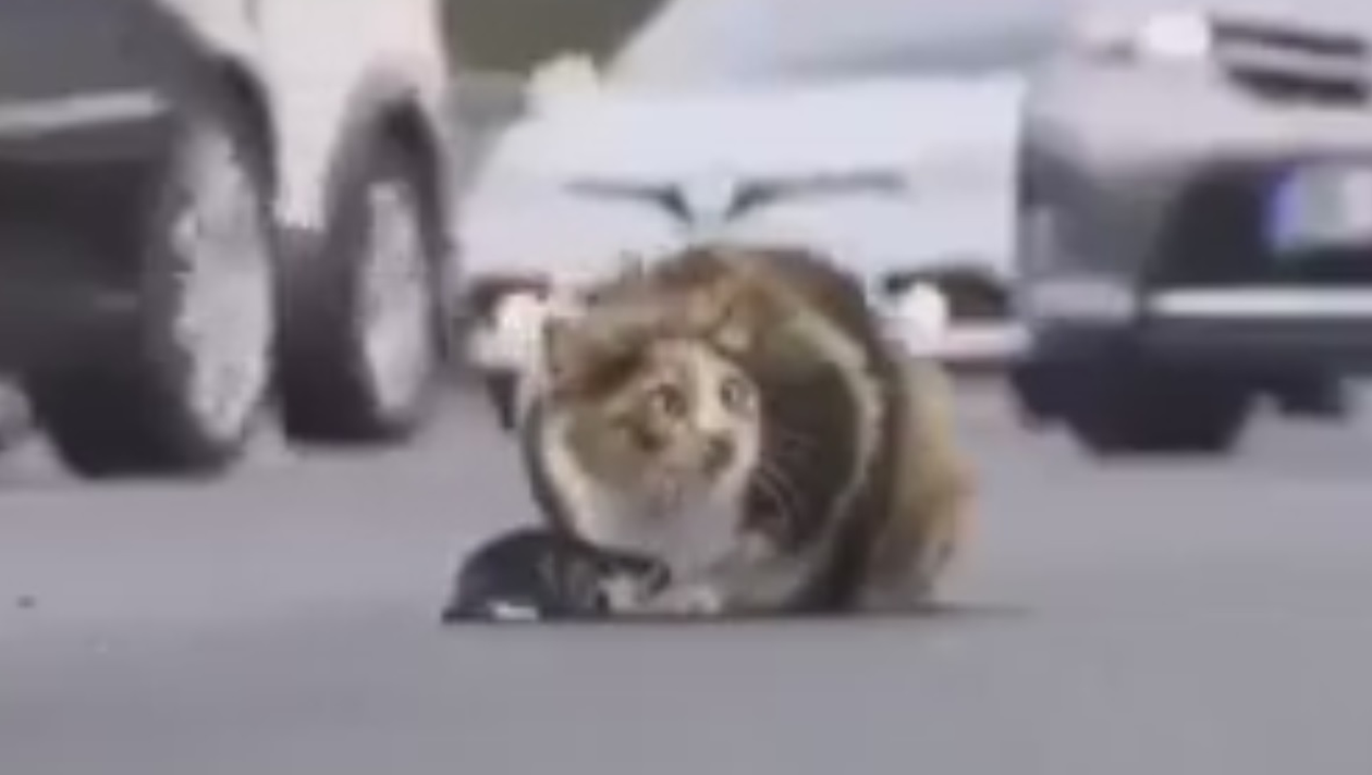 Reacţia unei pisici a reuşit să devină cea mai nouă senzaţie printre internauţi, după ce aceasta a stat minute în şir lângă puiul său, pe care l-a protejat, cu orice preţ, chit că cele două feline se aflau în mijlocul unei autostrăzi plină cu maşini.