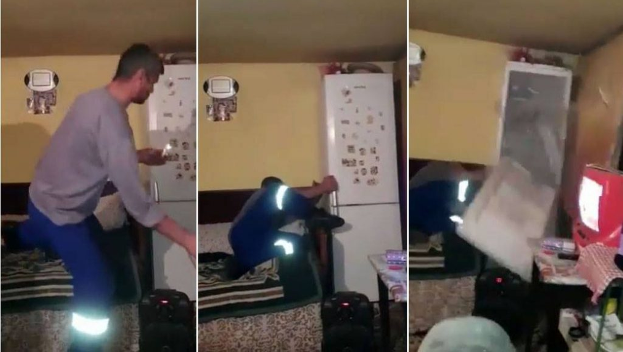 Așa că unul dintre s-a gândit (nu foarte mult) să arunce o petardă aprinsă într-un congelator, în timp ce un amic de-a lui filma toată scena.