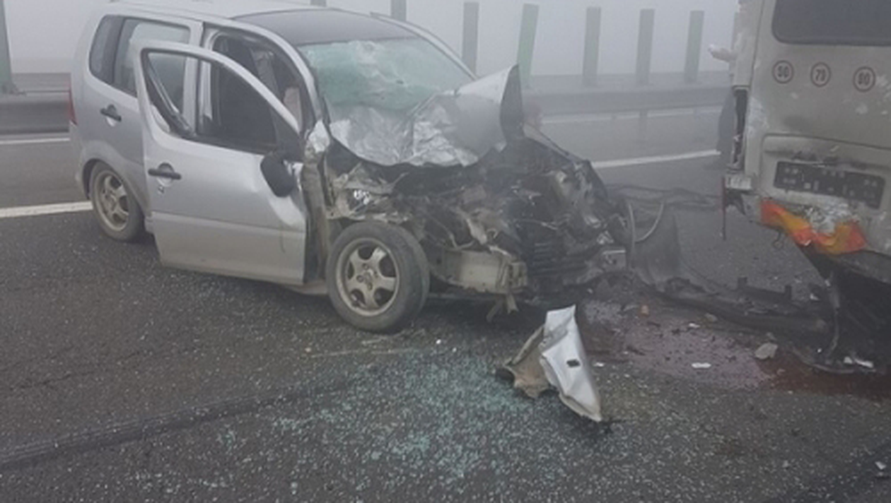 La faţa locului au fost trimise zece ambulanţe. Potrivit Centrului Infotrafic, accidentul s-a produs din cauza ceţii.