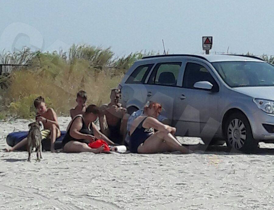 Cum putem observa şi în această imagine, nişte turişti stau pe plajă, lângă maşină, pentru a se proteja de razele soarelui. Oamenii par să se simtă în largul lor şi mulţumiţi că au găsit un loc la umbră.
