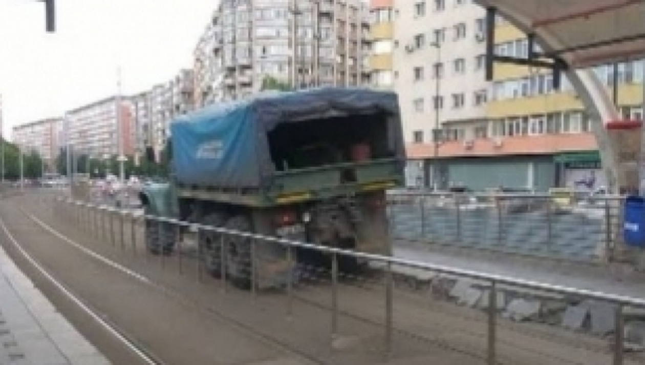 Un camion a intrat pe linia de tramvai, a călcat o parte din refugiul de la staţia Obor de pe  Şoseaua Mihai Bravu, şi l-a distrus.