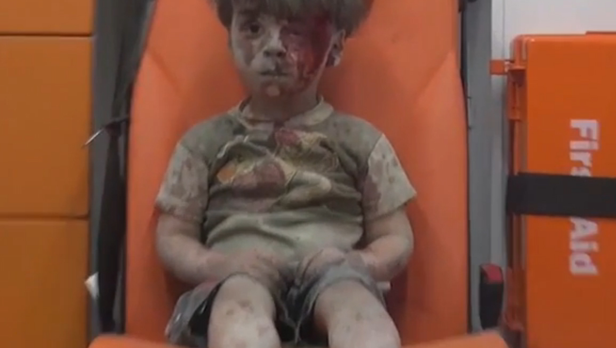 Imaginile cu un copil acoperit de praf din cap până în picioare au amuţit întreaga lume. Băiatul, care are cinci ani, a fost rănit în urma unui atac asupra oraşului sirian Alep, unde au loc lupte intense.