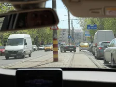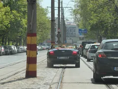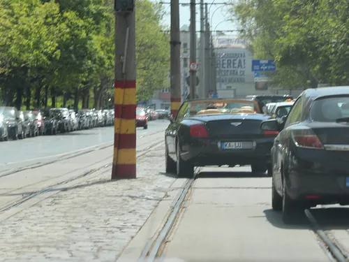 Sătul să aştepte într-o coloană de maşini, Franco Calu a început să meargă nestingherit cu bolidul său pe linia de tramvai.