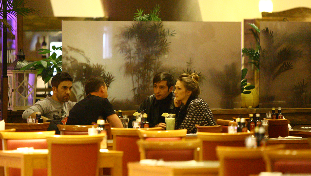 Din reactiile interlocutorilor lui se vede treaba ca baietii l-au „adoptat” si il considera deja de-al… trupei. Intre doua controverse si trei solutii, cei patru au mancat copios si au discutat fructuos.