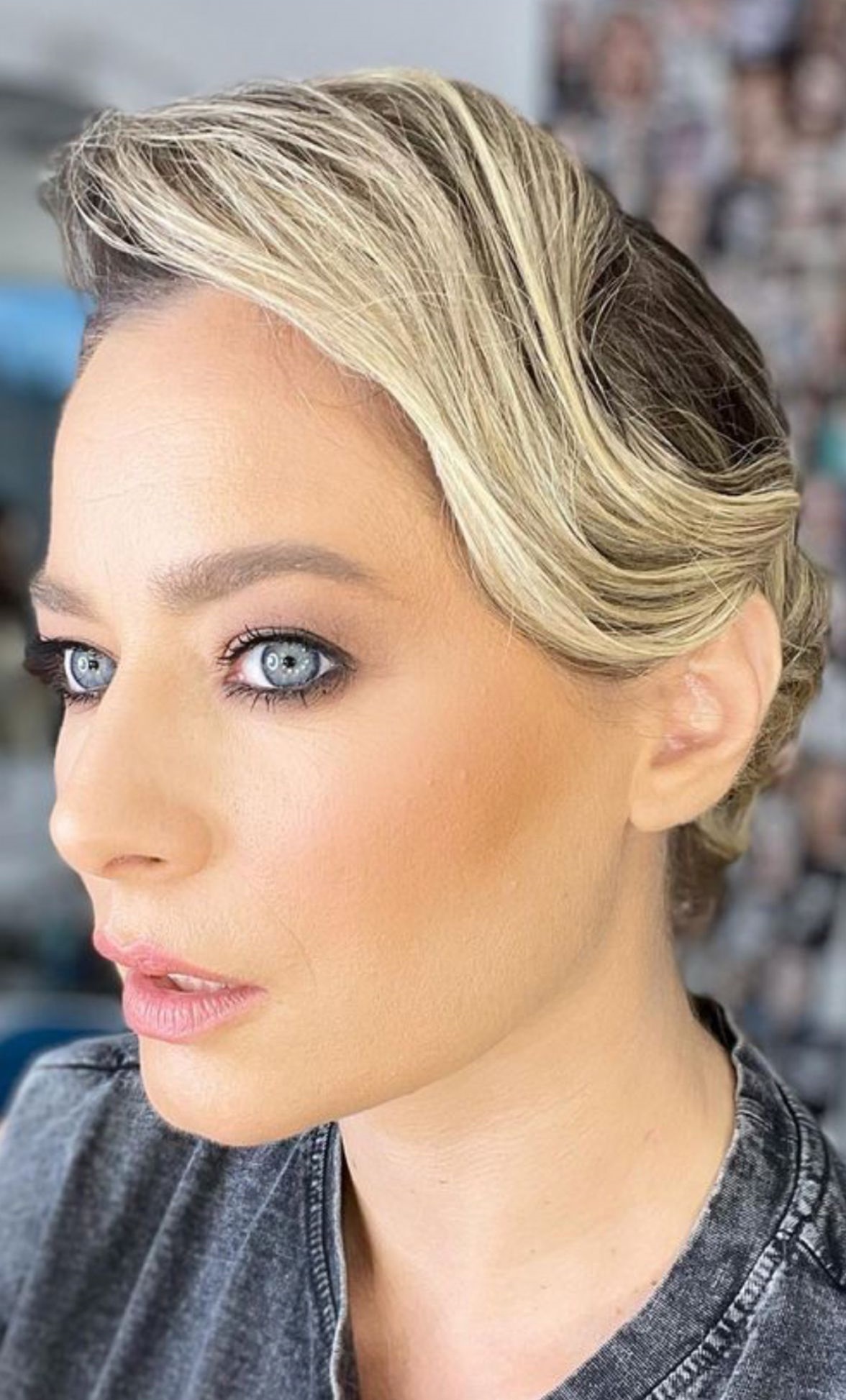 Andreea Frățilă: Andreea este un caz rar deoarece are părul nevopsit, natural, ceea ce nu prea mai întâlnești deloc în zilele noastre, în rândul clientelor. Firește, se vede bine părul ei natural, însă o vizualizez și cu un Balayage-contouring, cu niște șuvițe mai deschise. Acest tip de schimbare pe partea de contur ar aduce un plus de luminozitate pe chipul ei. Cât despre lungime, îmi place și acest bob compact, dar o prefer cu extensiile clip-on, nu foarte lungi. Extensiile conferă acea mișcare cu volum flexibil care o avantajează foarte mult.