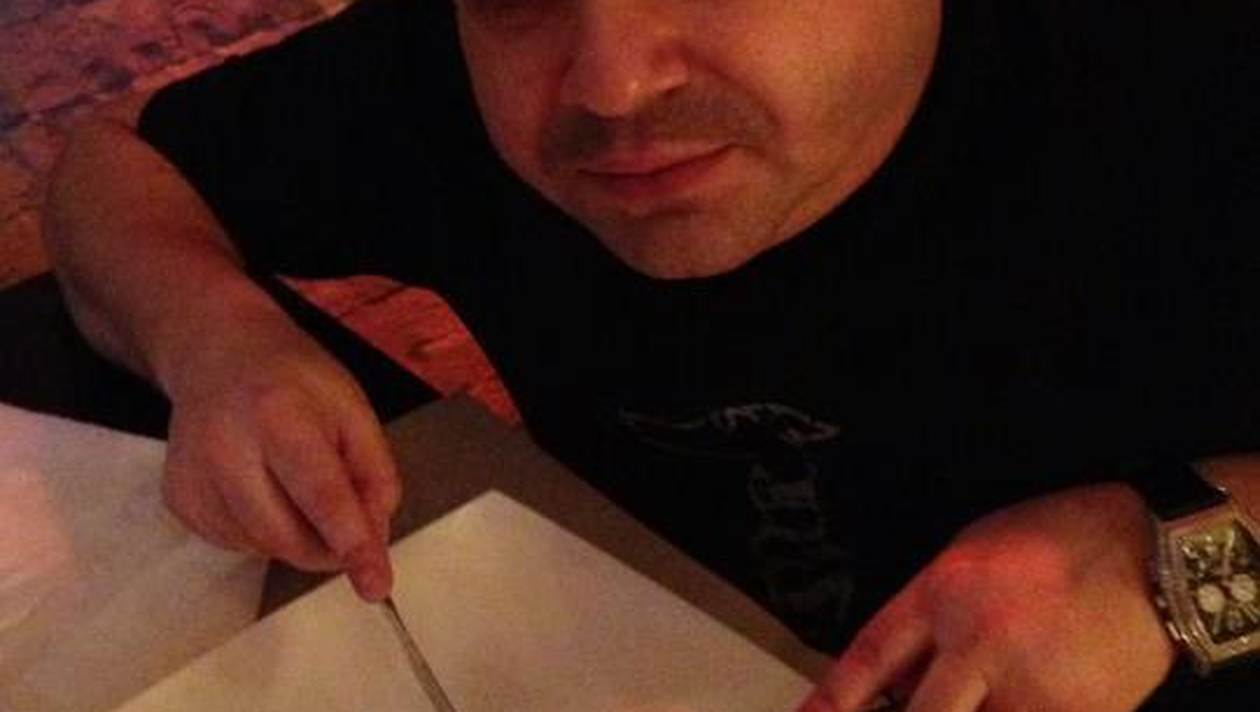 Cu furculita si cutitul in mana, manelistul pare ca incearca sa taie piatra pretioasa, insa, cu siguranta, la final a ales sa manance ceva comestibil si a facut acea poza pentru a o avea amintire. Nu i-ar fi cazut bine o asemenea piatra in stomac, mai ales ca nu ar fi vazut-o nimeni.
