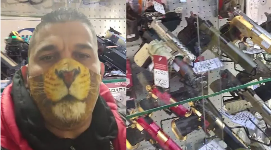 Adrian Corduneanu, unul dintre cei mai vestiți interlopi din Moldova, s-a filmat printre pistoale și mitraliere. Totul s-a petrecut într-un magazine de arme și muniție, din străinătate, iar Corduneanu nu a ratat ocazia de a arăta cât de ușor ar putea cumpăra o armă. Poza este generoasă, putem spune, cu el lângă armele de foc fiind fotografiați și amici lui, scrie bzi.ro.