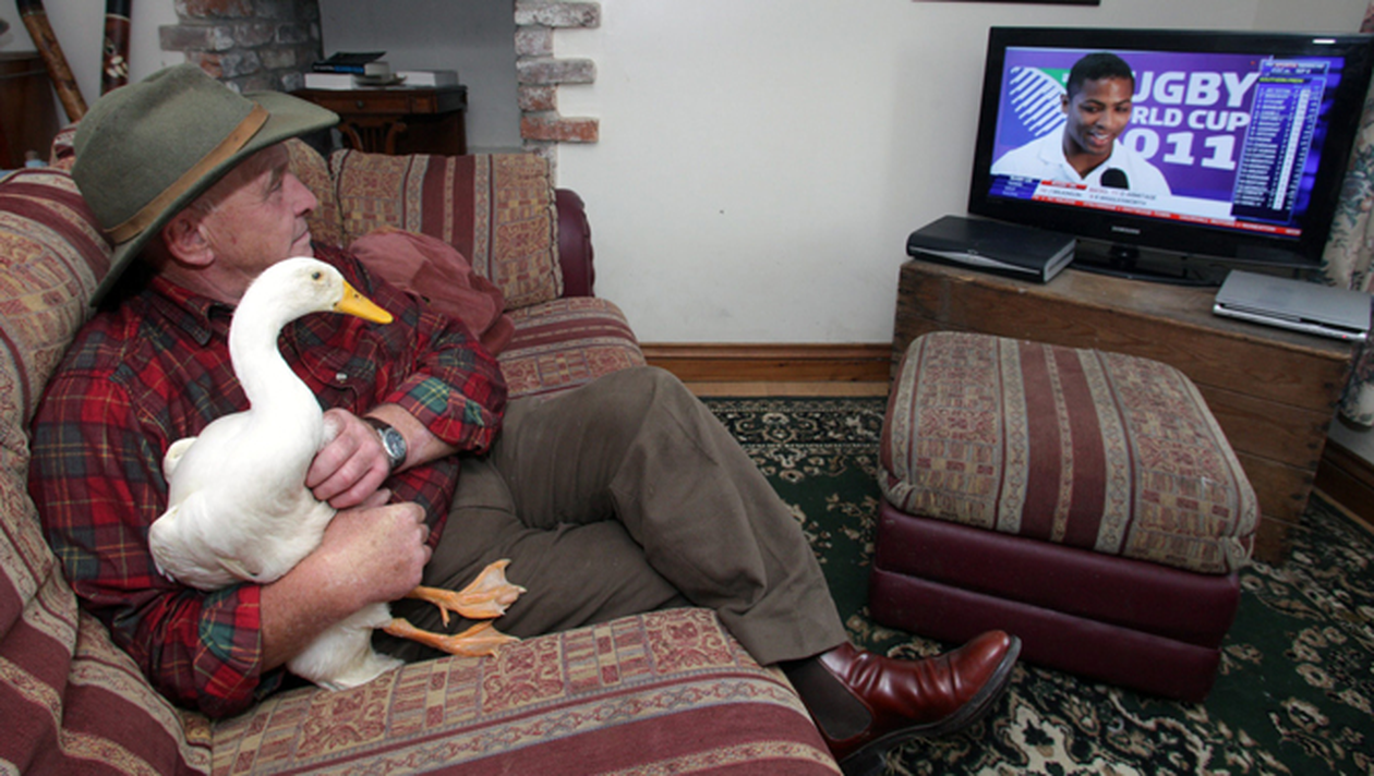 Este vorba despre o ratusca abandonata, care s-a atasat atat de mult de „tatal” ei adoptiv, incat nu mai e chip sa se desparta de el. Asa se face ca barbatul, in varsta de 65 de ani, a ajuns sa-si petreaca toata ziulica in compania ratei. Cei doi stau si se uita impreuna la televizor, se duc prin oras la cumparaturi, se plimba cu masina, ba merg si in baruri impreuna, dragalasa ratusca tinandu-i britanicului companie in timp ce acesta bea o bere.