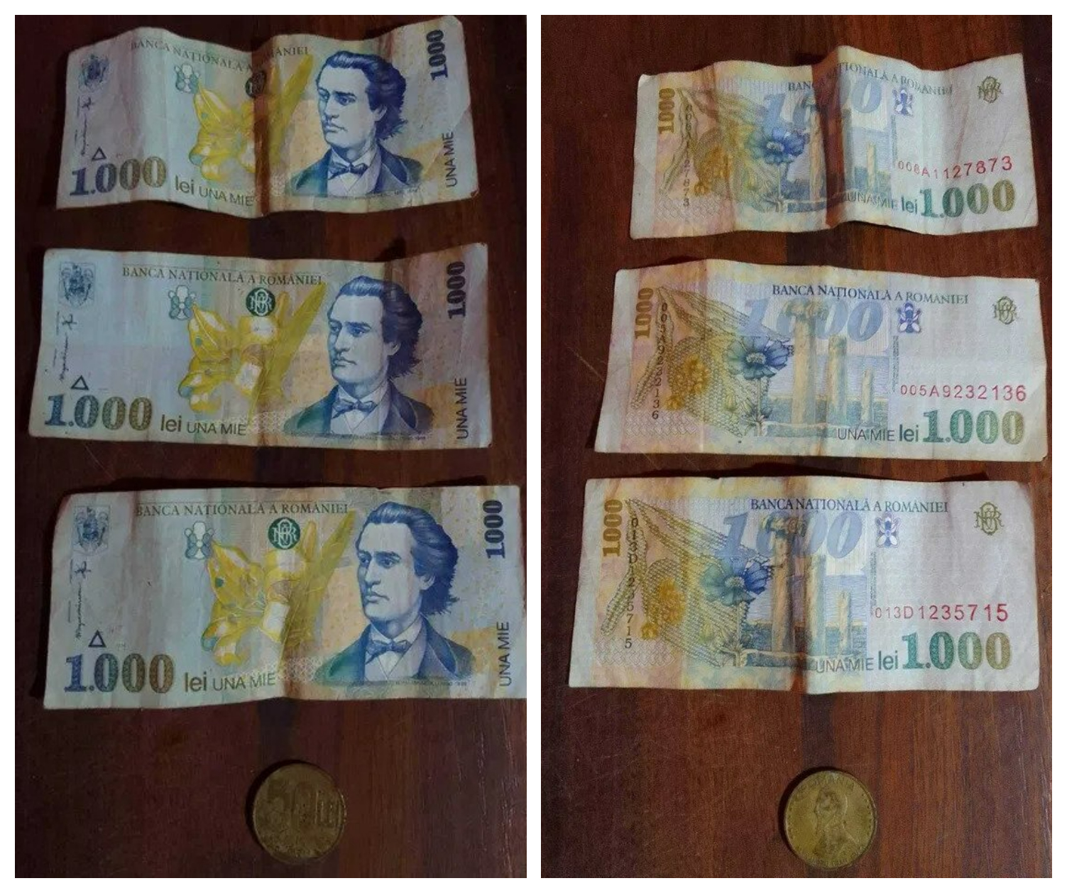 Poate reprezenta o mică „comoară” pentru colecționari! Pe o platformă, un utilizator a postat un anunț prin care vinde trei bancnote cu valoarea de 1000 de lei cu chipul lui Mihai Eminescu. Toate trei sunt din anul 1989 și se află într-o stare destul de bună, dacă ar fi să ne luăm după imaginile puse la dispoziție de vânzător.
