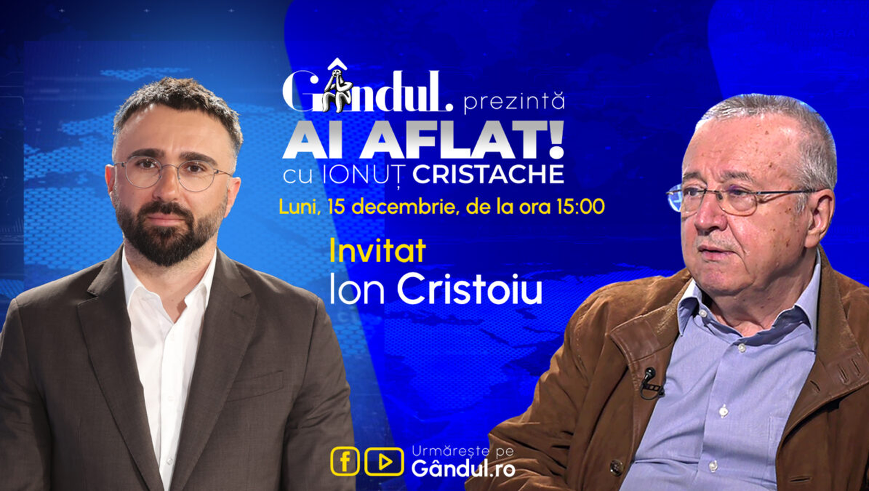 „Ai Aflat! cu Ionuț Cristache” începe luni, 15 decembrie, de la ora 15.00, live pe Gândul. Invitat: Ion Cristoiu