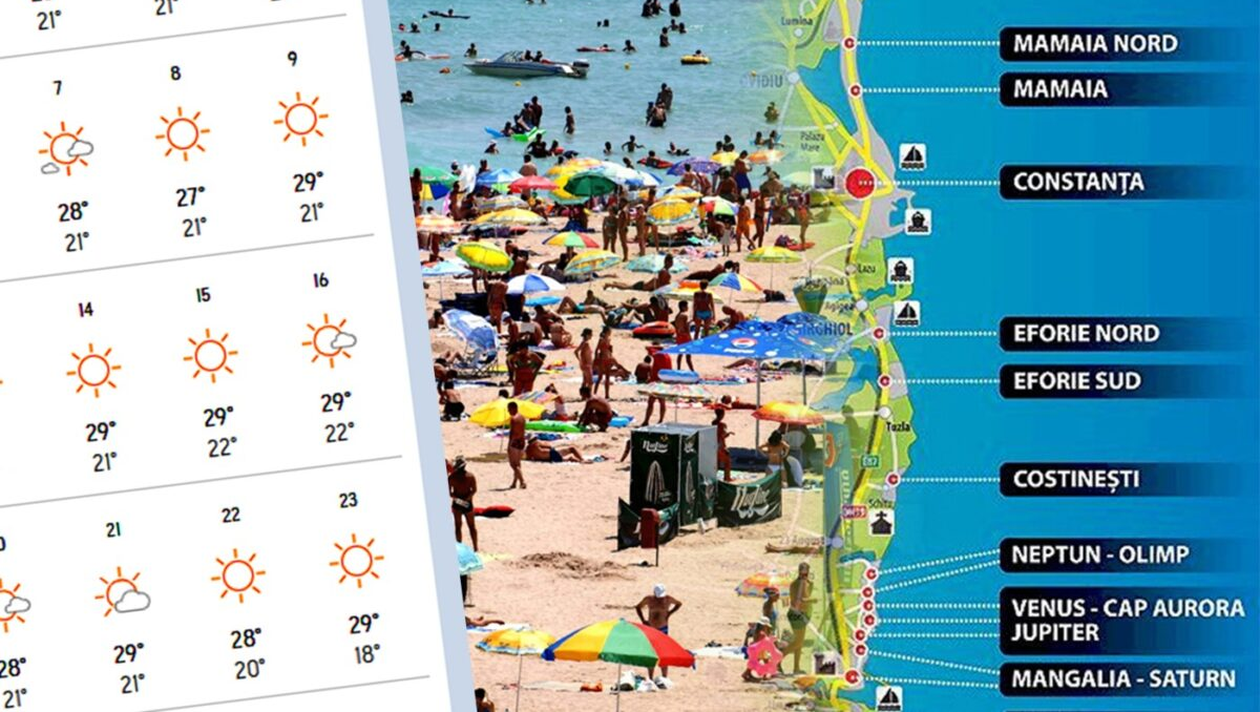 În plus, și nopțile se anunță plăcute, cu temperaturi minime care nu vor coborî sub 20 de grade, perfecte pentru plimbări pe faleză sau seri petrecute la terasă.