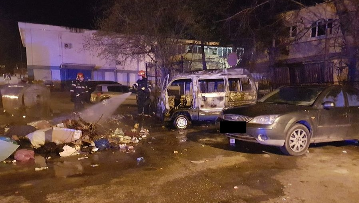 Focul – care a cuprins mai întâi o pubelă de gunoi -s-a extins rapid, până la sosirea pompierilor, și la o mașină parcată în apropiere. Flăcările au cuprins autovehiculul.