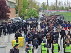 în conflict cu un grup de aproximativ 40 de suporteri dinamoviști, veniți pentru amenajarea coregrafiei în stadion. Jandarmii prezenți în zona stadionului au intervenit prompt și au reușit să stopeze incidentul.