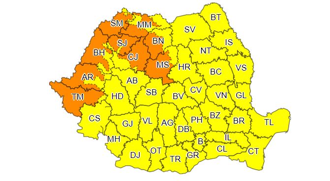 De asemenea, în perioada 29 iunie – 1 iulie 2022, toate regiunile țării se vor confrunta cu un cod galben și cod portocaliu de caniculă și disconfort termic accentuat.