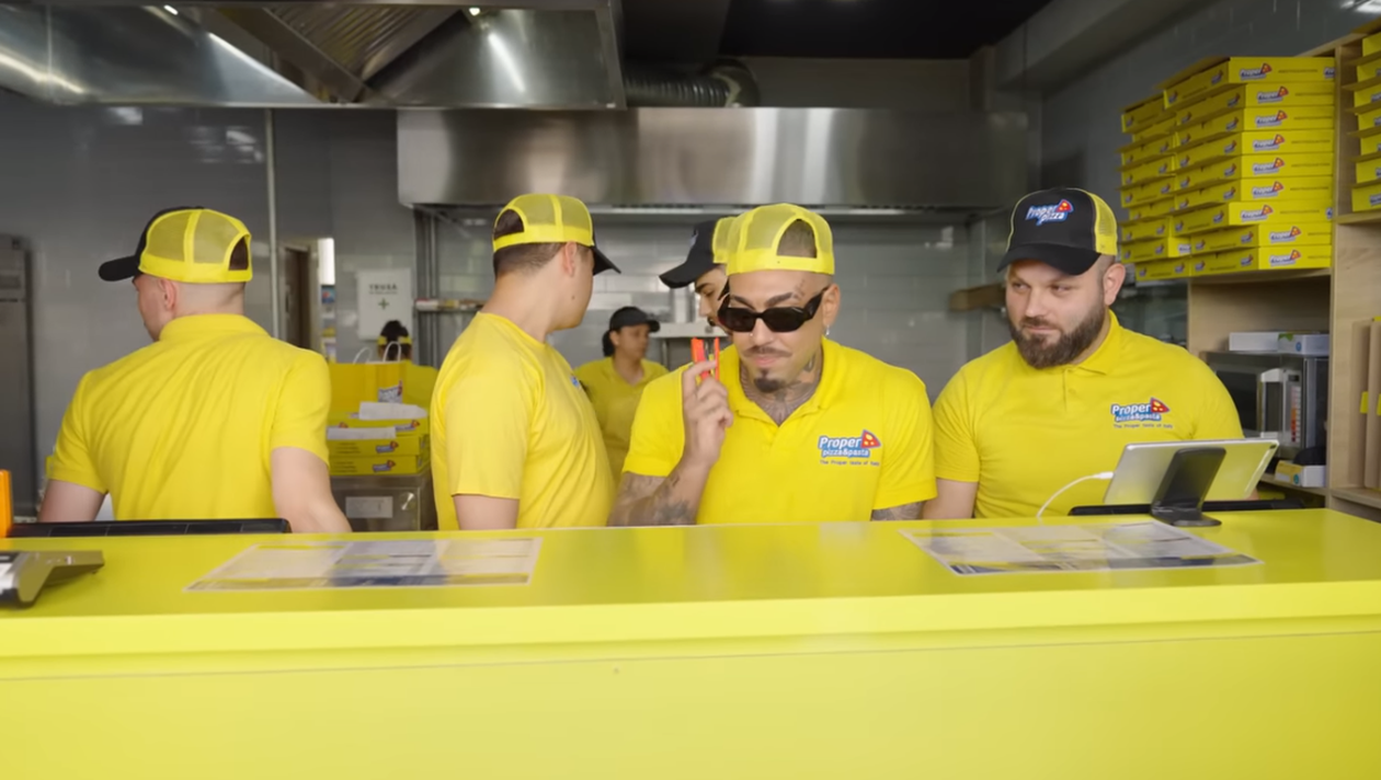 Alex Velea la pizzerie / Sursă foto: captură Youtube
