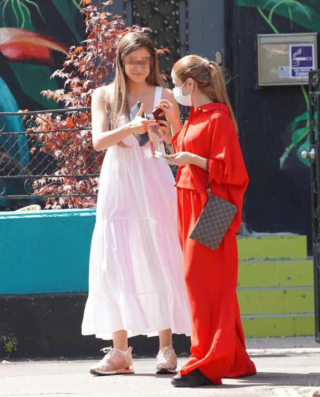 Ulterior, cele două au oprit în dreptul unui salon de înfrumusețare, unde amica fiicei omului de afaceri a zăbovit preț de câteva zeci de secunde.