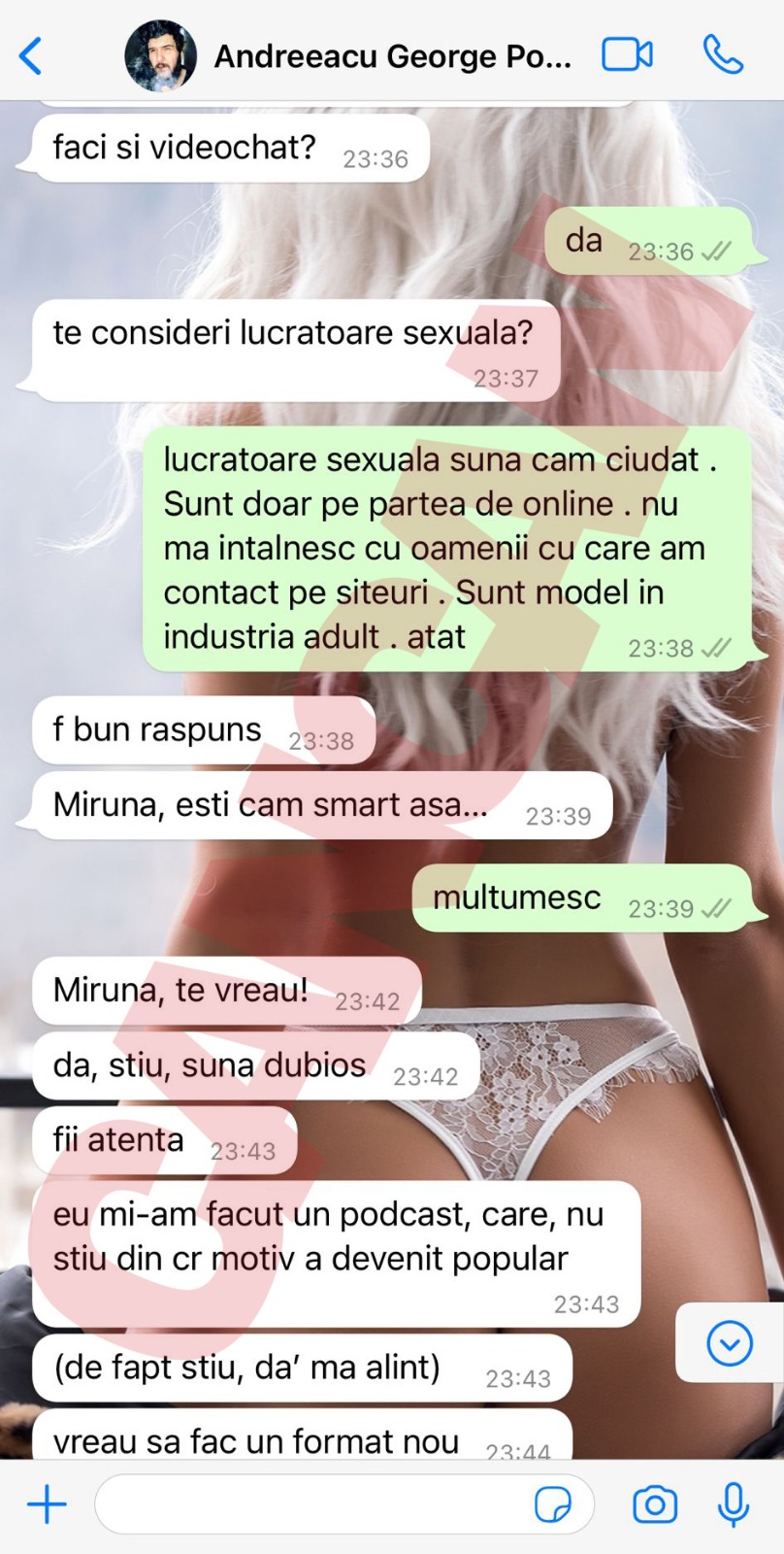 Ce să mai încoace și încolo, o vrăjea pe Ema Karter că, cităm: „«O am de 22 cm și am auzit că îți place să te f*** . Sunt ca un cal, f** nonstop»!”. Așa i-ar fi transmis fetei, așa o dăm și noi mai departe! Dar oare… Alexandra știe?