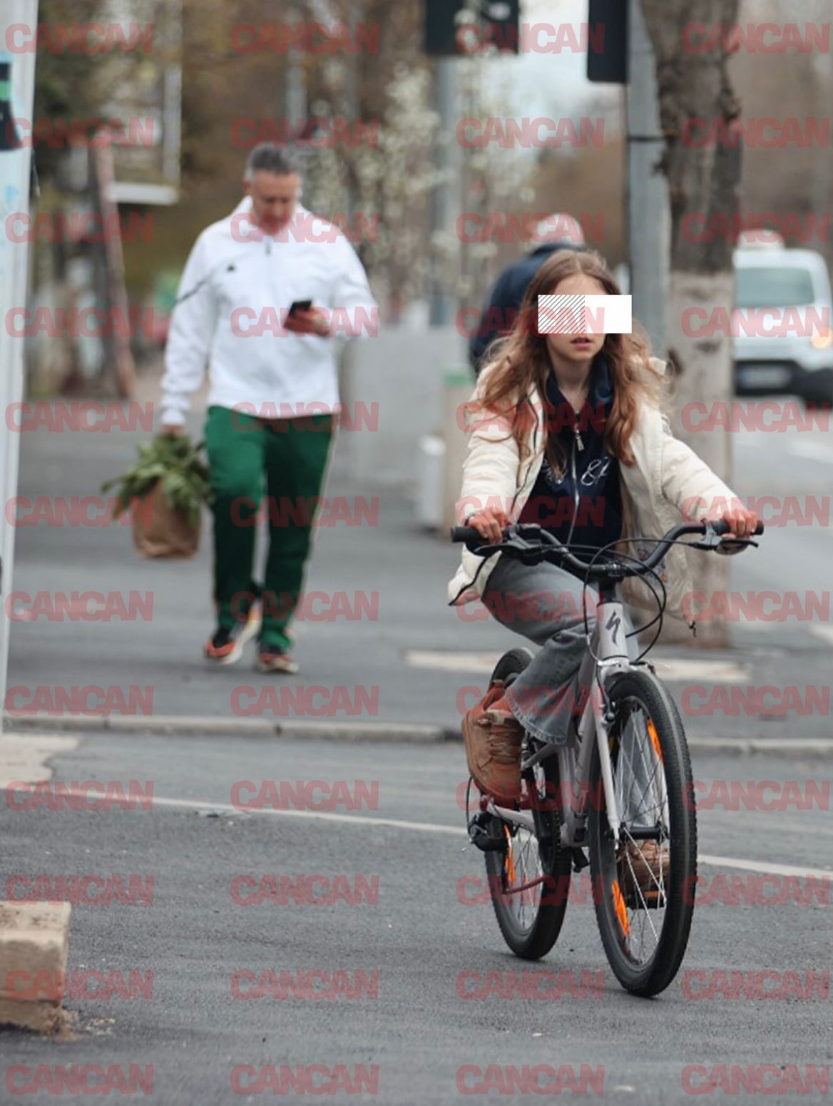 În timp ce fetița pedala fericită pe bicicletă, Alexandru Sautner mergea în urma ei și, cu această ocazie, a făcut și cei 10.000 de pași care sunt recomandați pentru o viață sănătoasă. Bucătarul nu prea a admirat împrejurimile și nu s-a bucurat de vremea primăvăratică, pentru că a fost absorbit de telefonul mobil. Poate căuta rețete bio pentru masa festivă, că doar a cumpărat o plasă de zarzavaturi.