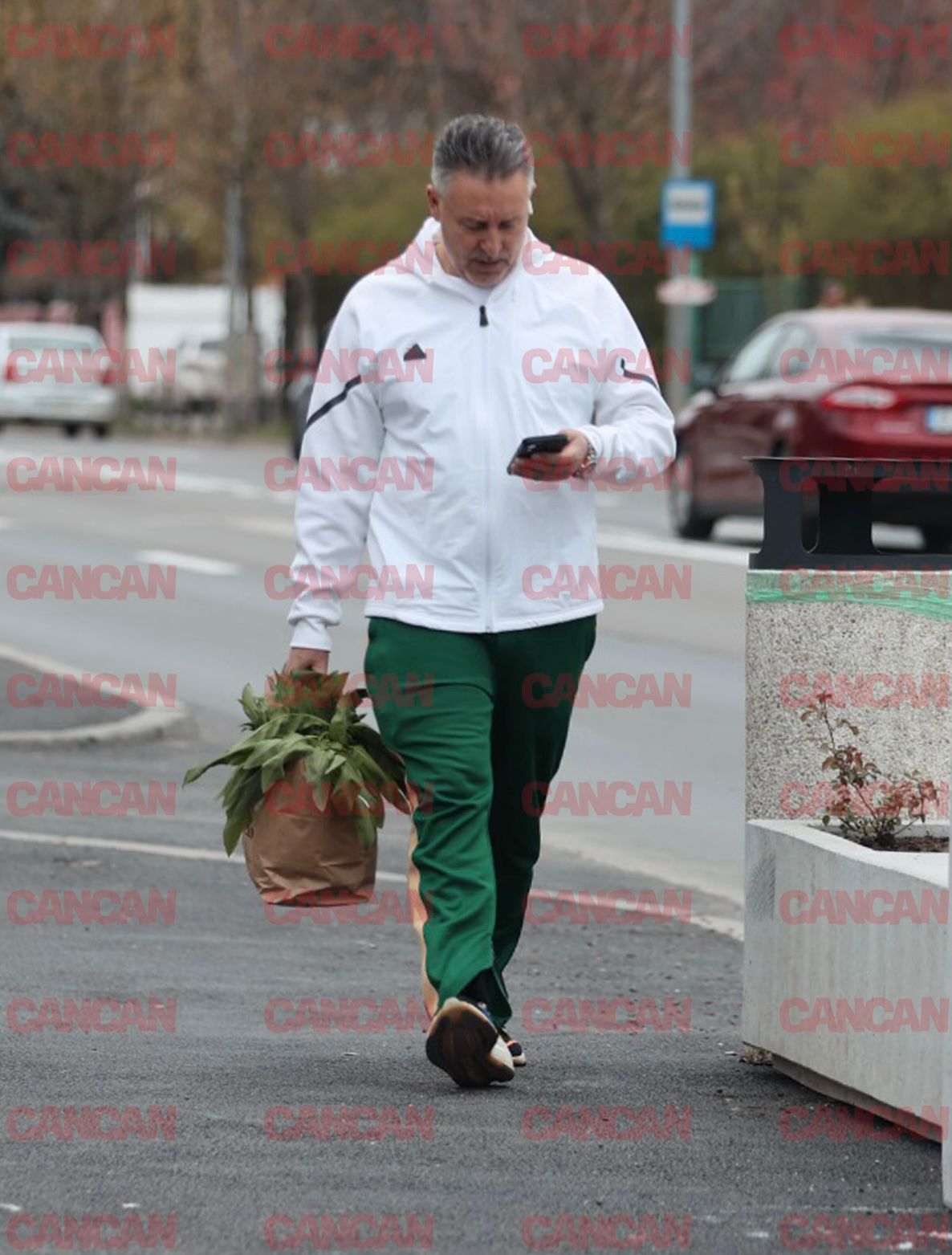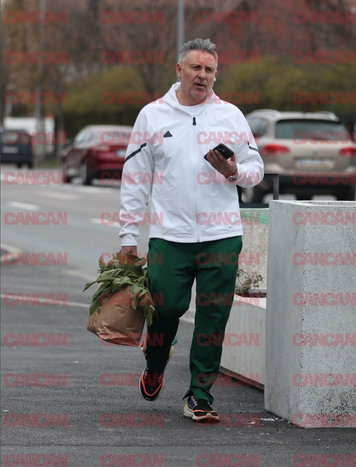 Alexandru Sautner a renunțat la vestitul halat alb de chef, pe care îl poartă la filmările emisiunii „Chefi la cuțite” și în bucătărie, și a ales o ținută cu un vibe cool și sport. Vedeta TV a purtat o jachetă albă de fâș de la Adidas și, ce credeți?, pantaloni verzi, perfect asortați cu salata din sacoșa de hârtie. Chiar și plasa cu verdeață ieșită părea că face parte din styling.