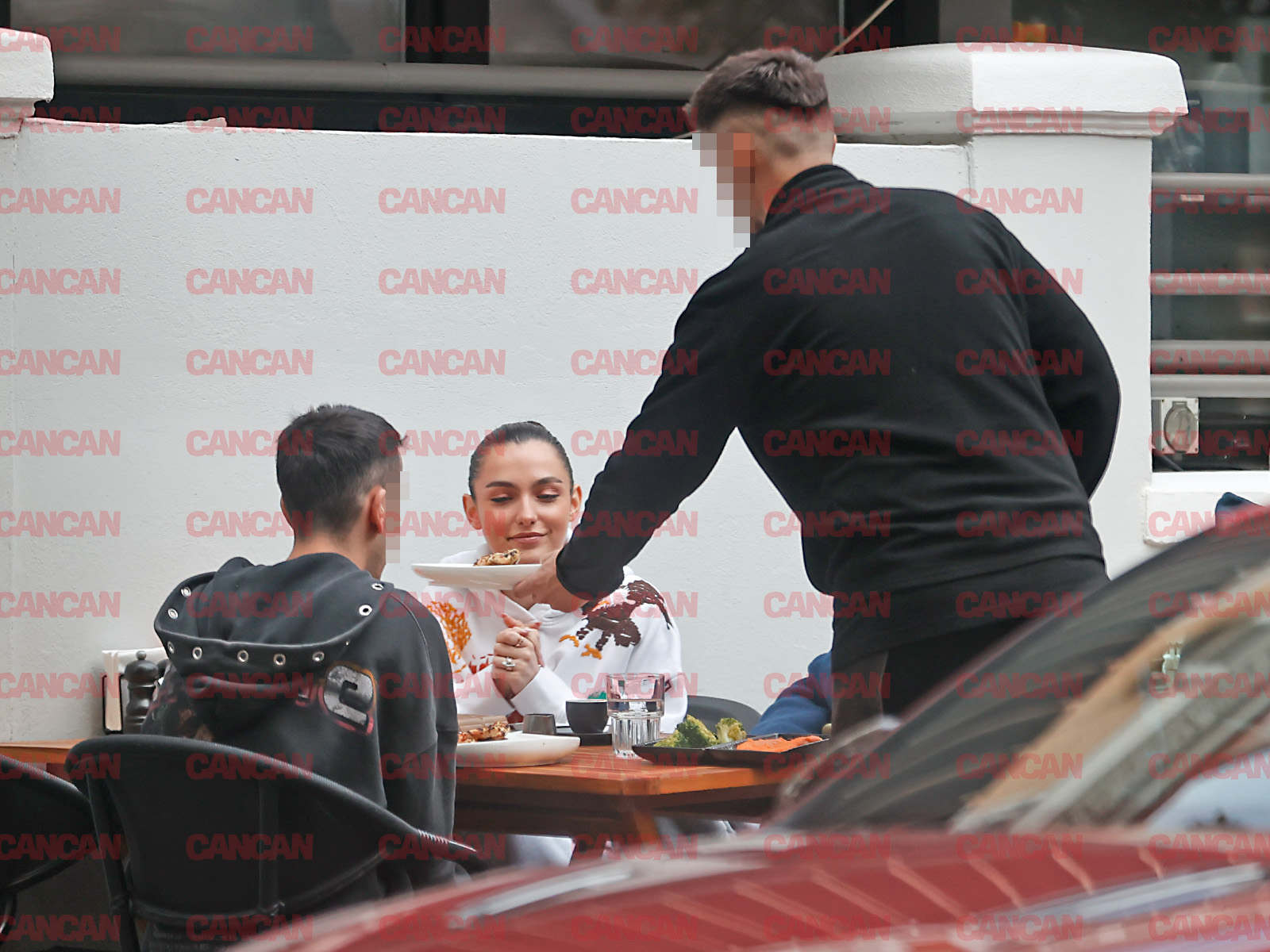 Alexia Eram e toată numai un zâmbet când ospătarul îi aduce mâncarea