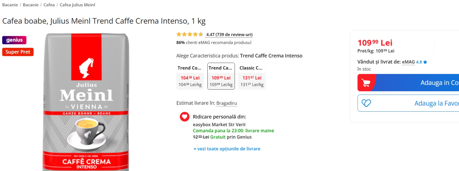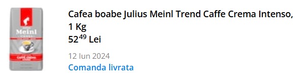 Aceeași cafea Julius Meinl Trend Caffè Crema Intenso de 1 kg, pe același site, se vindea acum un an la aproximativ jumătate din prețul actual. Această majorare rapidă și semnificativă subliniază impactul combinat al inflației, al costurilor crescute de import și al ajustărilor fiscale asupra produselor premium, transformând achiziția unui kilogram de cafea într-o investiție mult mai mare pentru consumatorii obișnuiți.