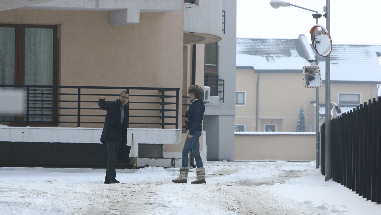 Prezentatoarea TV a venit la vizionare si cu aparatul de fotografiat tocmai pentru a-i arata si iubitului ei posibilele apartamente unde se pot muta.