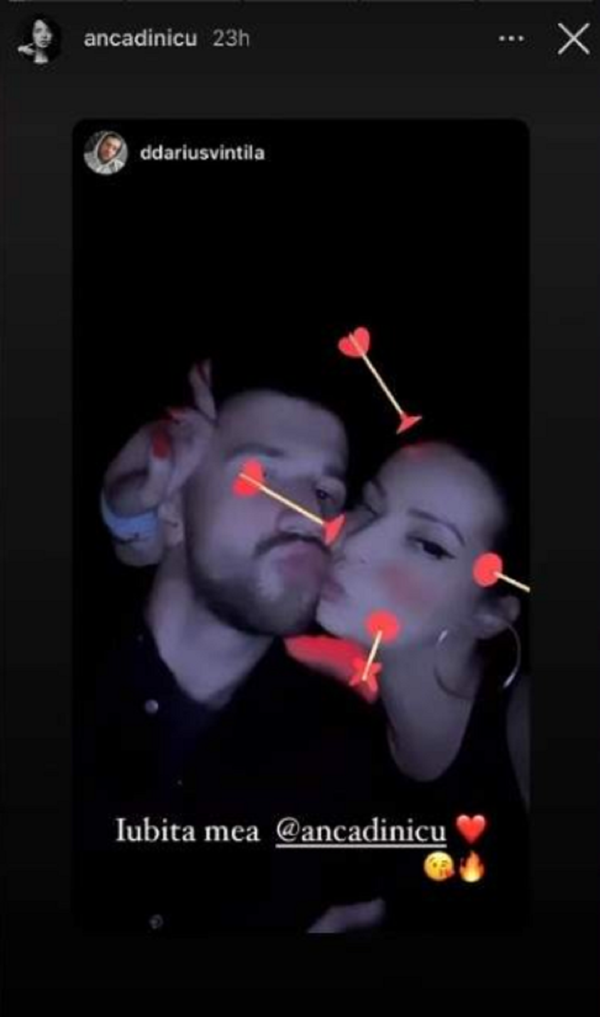 Fotomodelul Darius Vintilă (22 de ani) este bărbatul care o sărută pe Anca. Fotografia a fost publicată, pe Instagram, de către Anca, dar a fost distribuită și de Darius, care a completat imaginea cu un mesaj care lasă loc de multe interpretări: ”Iubita mea @ancadinicu”.
