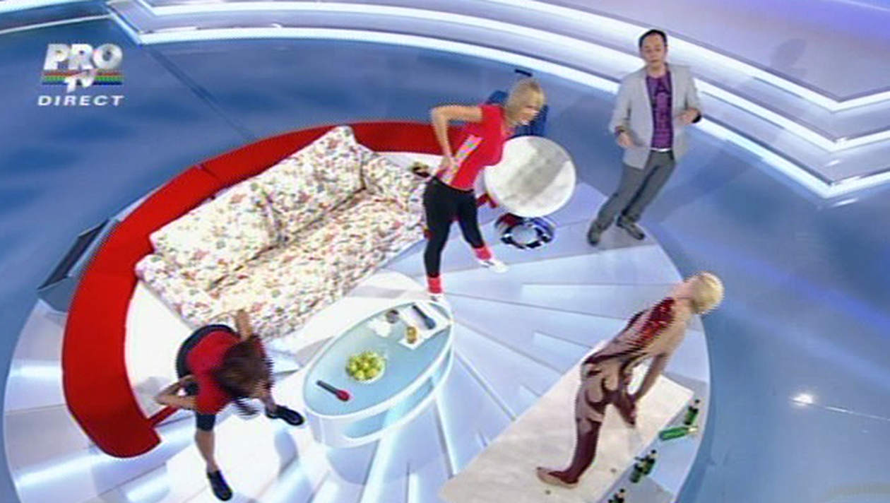„Nu fac sport in fiecare zi, nu exagerez, in privinta asta. Eu sunt mai impiedicata asa, eram mai dolofana. Am facut atletism de performanta dintr-o greseala si asta mi-a deschis orizontul catre sport”, a declarat Anca Turcasiu, apoi a inceput lectia de gimnastica alaturi de Roxana Ciuhulescu si Zlata.