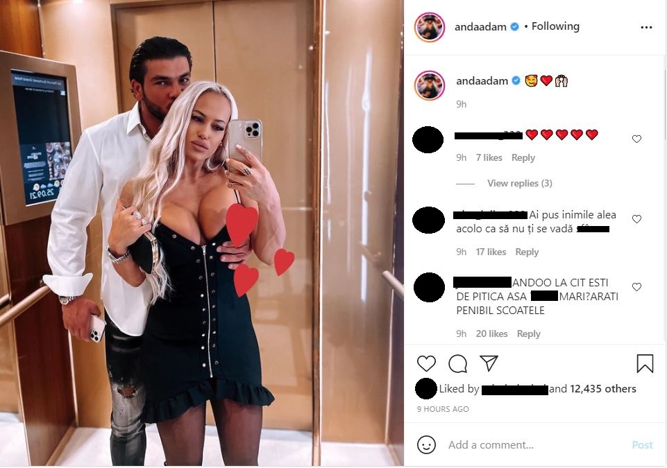 Anda Adam și Yosif Eudor Mohaci, iubitul ei, s-au fotografiat în oglindă, iar imaginea a ajuns pe rețelele de socializare. Cântăreața a fost luată ”la rost” de internauți, după ce un detaliu intim le-ar fi sărit în ochi. În imagine, în zona bustului, apar trei inimioare, semn că ar putea „ascunde” un detaliu intim. Îmbrăcată într-o rochie neagră, mulată pe corp, Anda Adam pare mai îndrăgostită ca niciodată de partenerul ei de viață.
