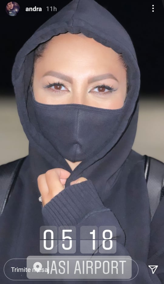 După ce a terminat concertul și a dat jos rochia de seară, Andra s-a îmbrăcat în ceva mai comod și potrivit pentru drum. Aceasta s-a fotografiat purtând un hoodie negru, cu gluga în cap și cu masca de protecție pe față. Fanii au fost surprinși să o vadă pe artistă așa, având în vedere că s-au obișnuit cu un stil mai glamorous din partea ei. Cu toate acestea internauții au apreciat schimbare și felul în care Andra s-a „camuflat”.