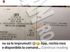 Mai mult decât atât, Andreea Bănică se dezice de orice asociere a numelui ei cu cel al criticului de modă, pe care Bianca l-a acuzat că poartă rochii împrumutate, şi subliniză faptul că şi-a achiziţionat rochia purtată la botezul fiului ei de la un magazin din Franţa, prezentând şi bonul fiscal, dezvăluind totodată că a scos din buzunar 2.950 de euro pentru creaţia mult disputată.