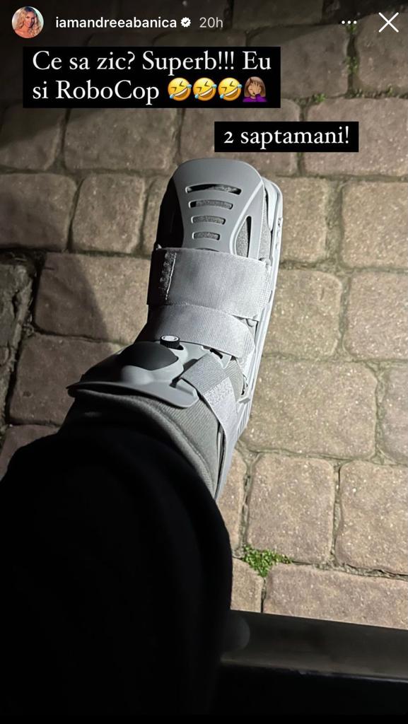 Pe lângă radiografia a piciorului pe care a publicat-o în mediul online, Andreea Bănică a postat și câteva fotografii în care piciorul ei nu arată deloc bine. Fără să spune exact ce s-a întâmplat, vedeta a ținut doar să menționeze că de acum încolo va avea nevoie de mult ajutor. Mai mult, aceasta susține că va fi nevoită să se deplaseze cu ajutorul unui baston sau cârje. Blondina are acum o orteză la piciorul stâng, pe care o va purta pe perioada următoarelor 2 săptămâni.