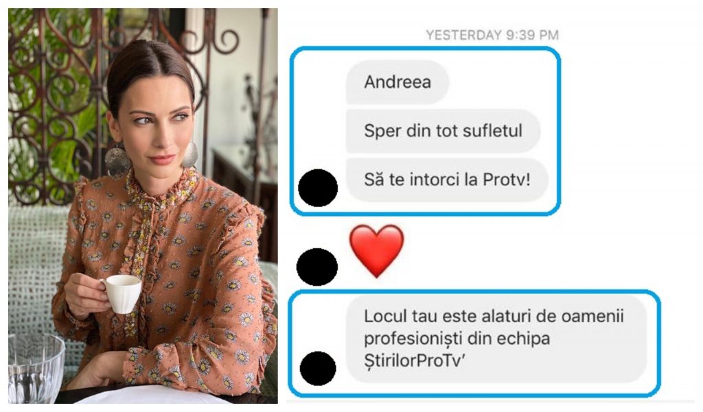 Îndrăgita Andreea Berecleanu a fost copleșită de numărul impresionant de mesaje publice și private primite în ultimele două zile. Iar printre acestea s-au numărat și câteva în care i s-a mărturisit că publicul își dorește să o revadă în grila postului de televiziune Pro TV, după cum puteți vedea în colajul de mai jos. Recent, ea a oferit primele declarații despre plecarea ei neașteptată de la Antena 1, însă, nu a dezvăluit nimic din planurile sale profesionale. Astfel… dacă va fi sau nu în curând colegă cu Andreea Esca… rămâne de văzut!